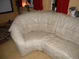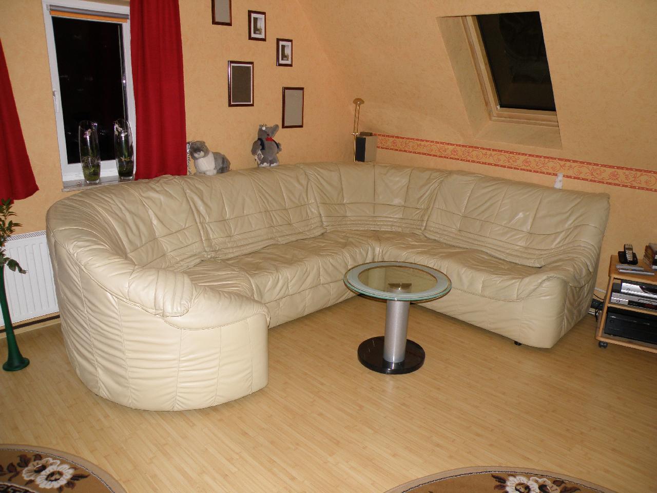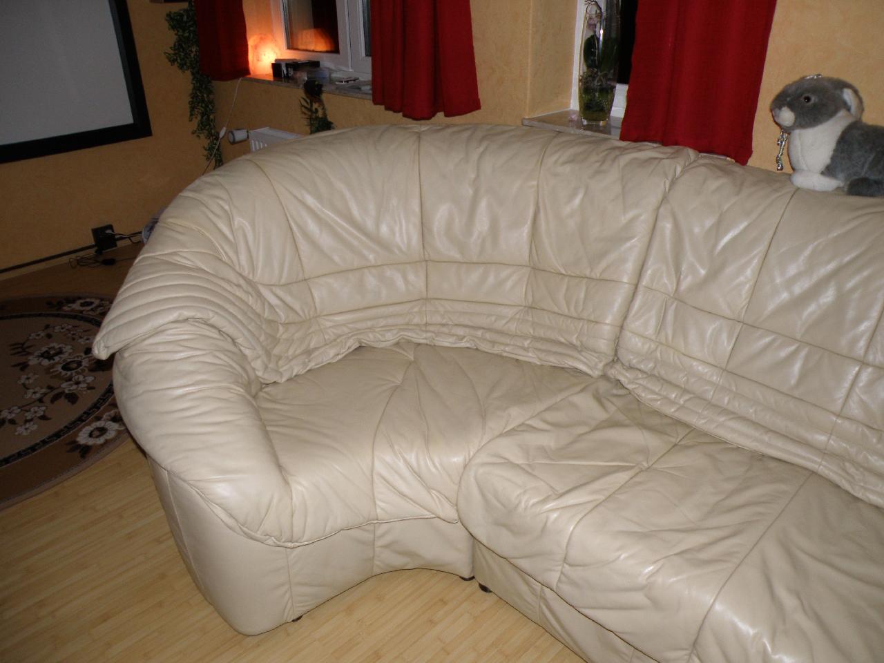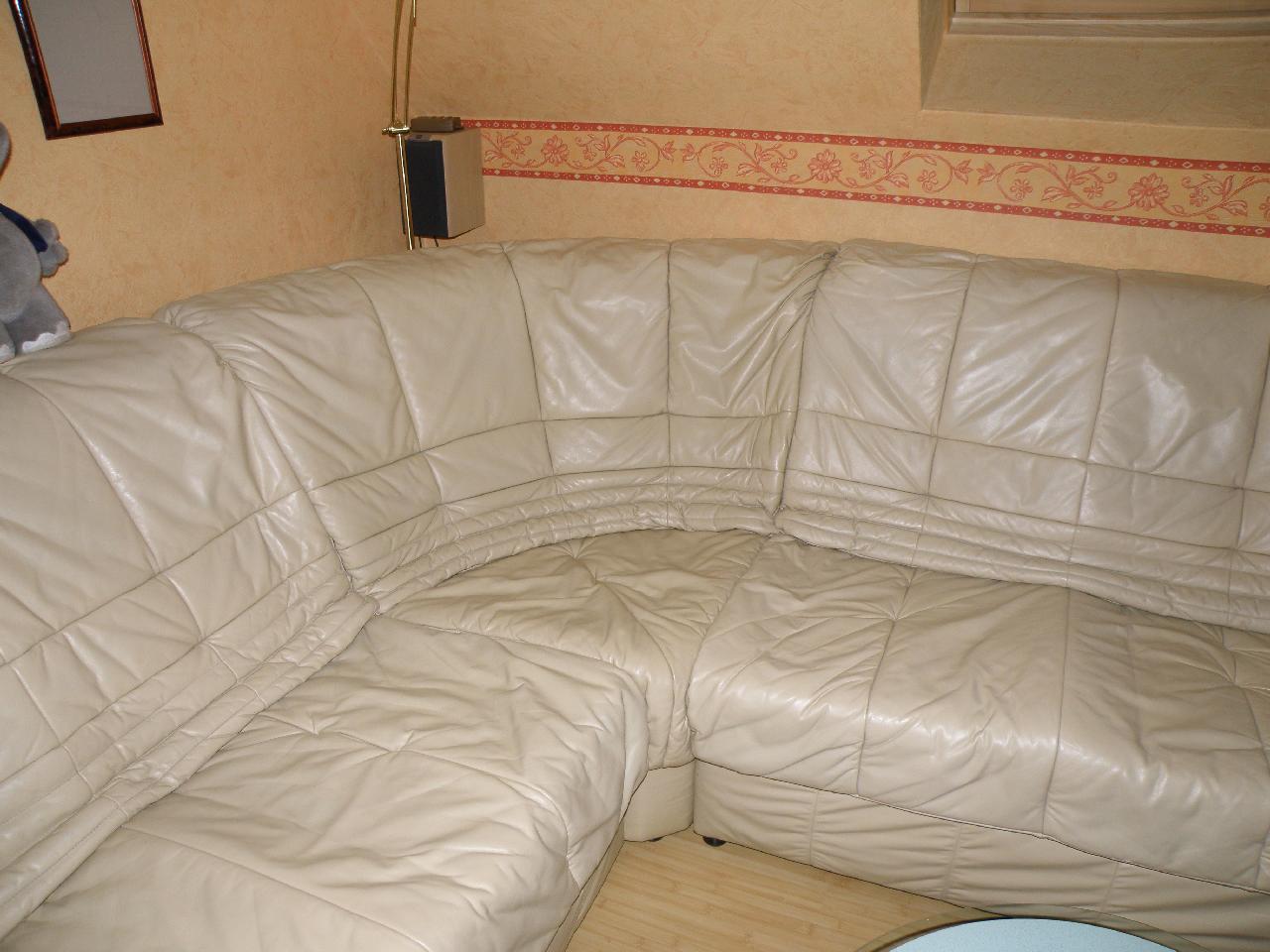 Diese schwarze Wohnlandschaft aus Leder wurde komplett neu in beige eingefärbt.